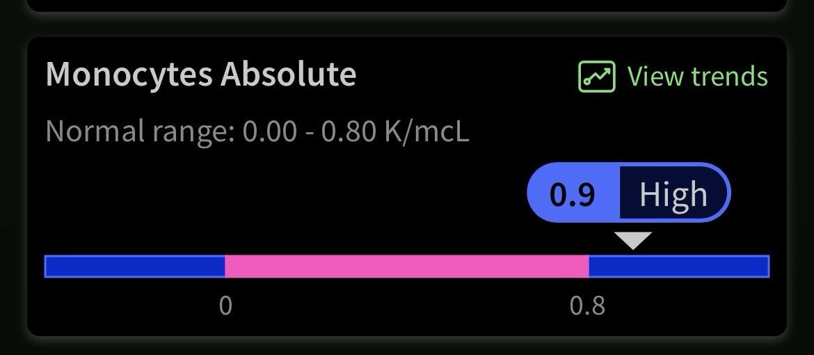 In relation to sarcoidosis, high monocyte levels occur as the body reacts to chronic inflammation.